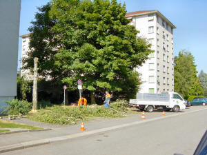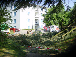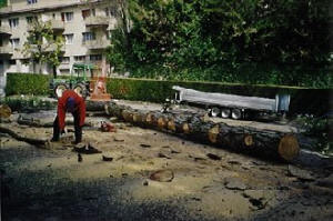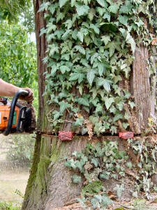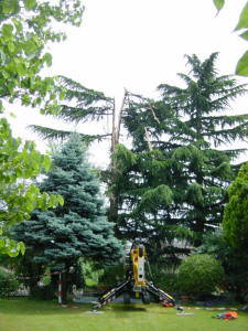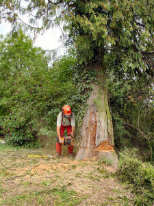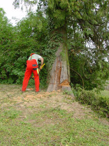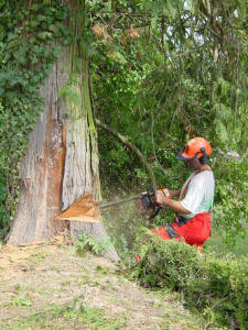 Abattage difficile d'un pin de 60 cm de diamètre et de 25 m de hauteur :
