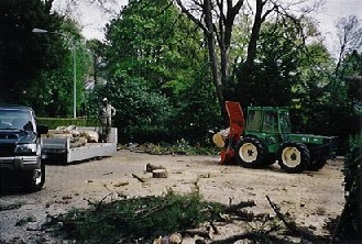 Câblage à l'aide d'un tracteur avec treuil forestier et d'un tirfor.